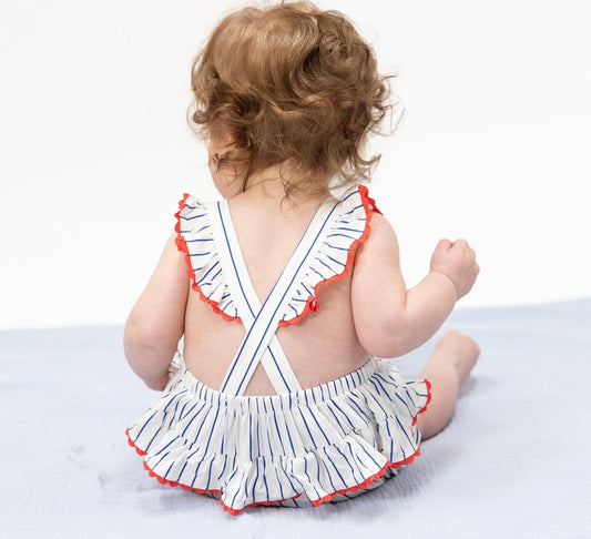 Baseball Stripe -Ric Rac Ruffle Sunsuit