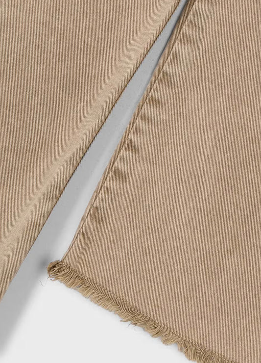 Beige Wide Leg Twill Pants