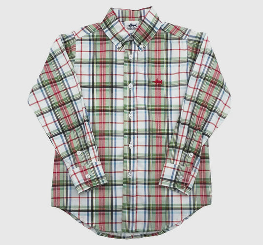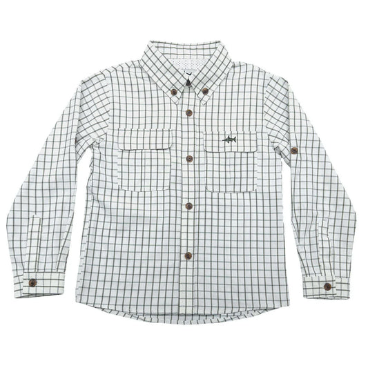 Flagler Boys Fishing Shirt Olive and White Plaid