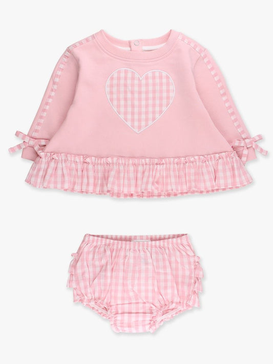 Heart Pink Gingham Sweatshirt Swing Top and Bloomer Set