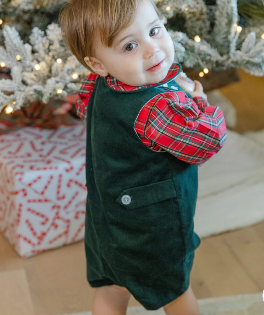 This John John Short is made from soft forest green corduroy that makes it a perfect cozy choice for cooler days. Side tabs add a touch of classic detail while shoulder buttons allow for easy dressing. Whether layered with a shirt or worn solo, this piece is perfect for festive occasions and casual comfort with a polished look.