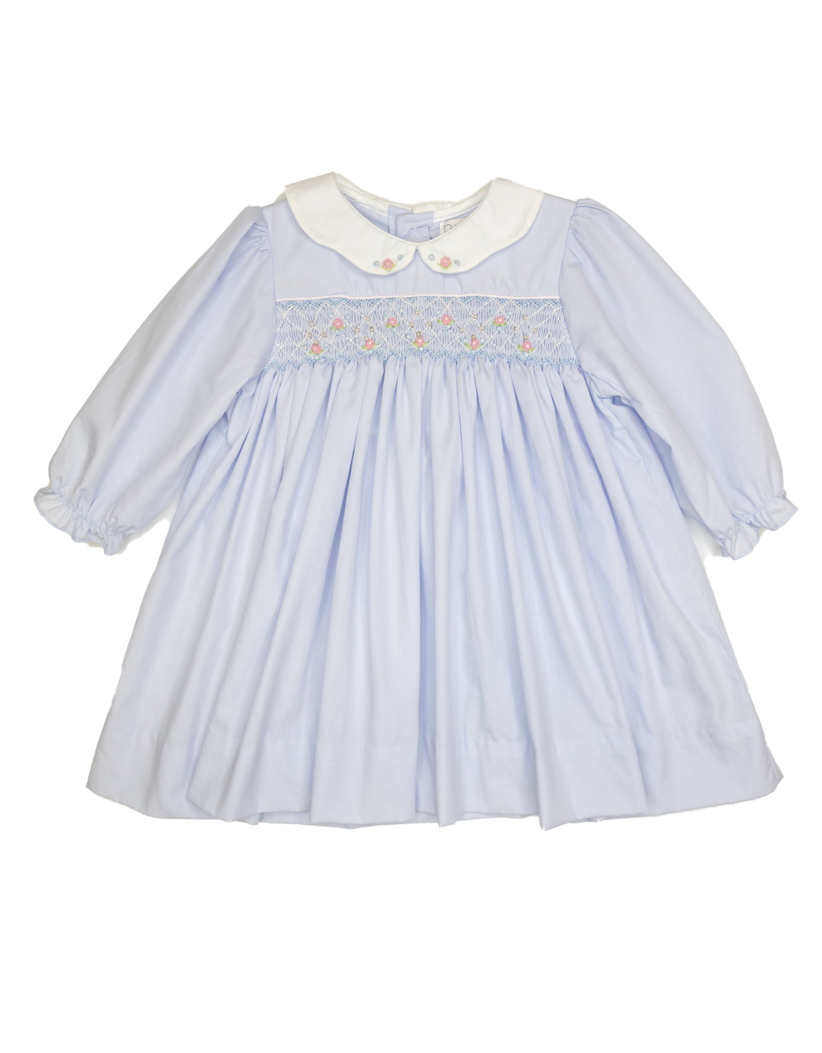 Perfect for year round wear with sweet hints of pink, green and pearls on the smock.