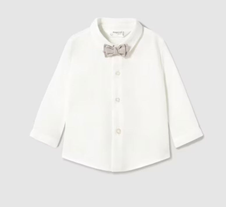 a classic button up with a tiny bow tie to make him more fancy is the perfect combo for pictures or weddings!