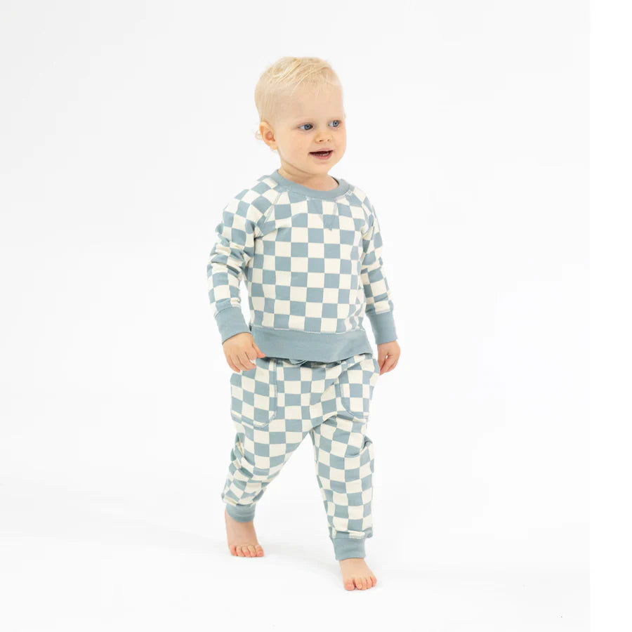 Checkerboard Gray Mist Raglan Sweatshirt + Jogger Set