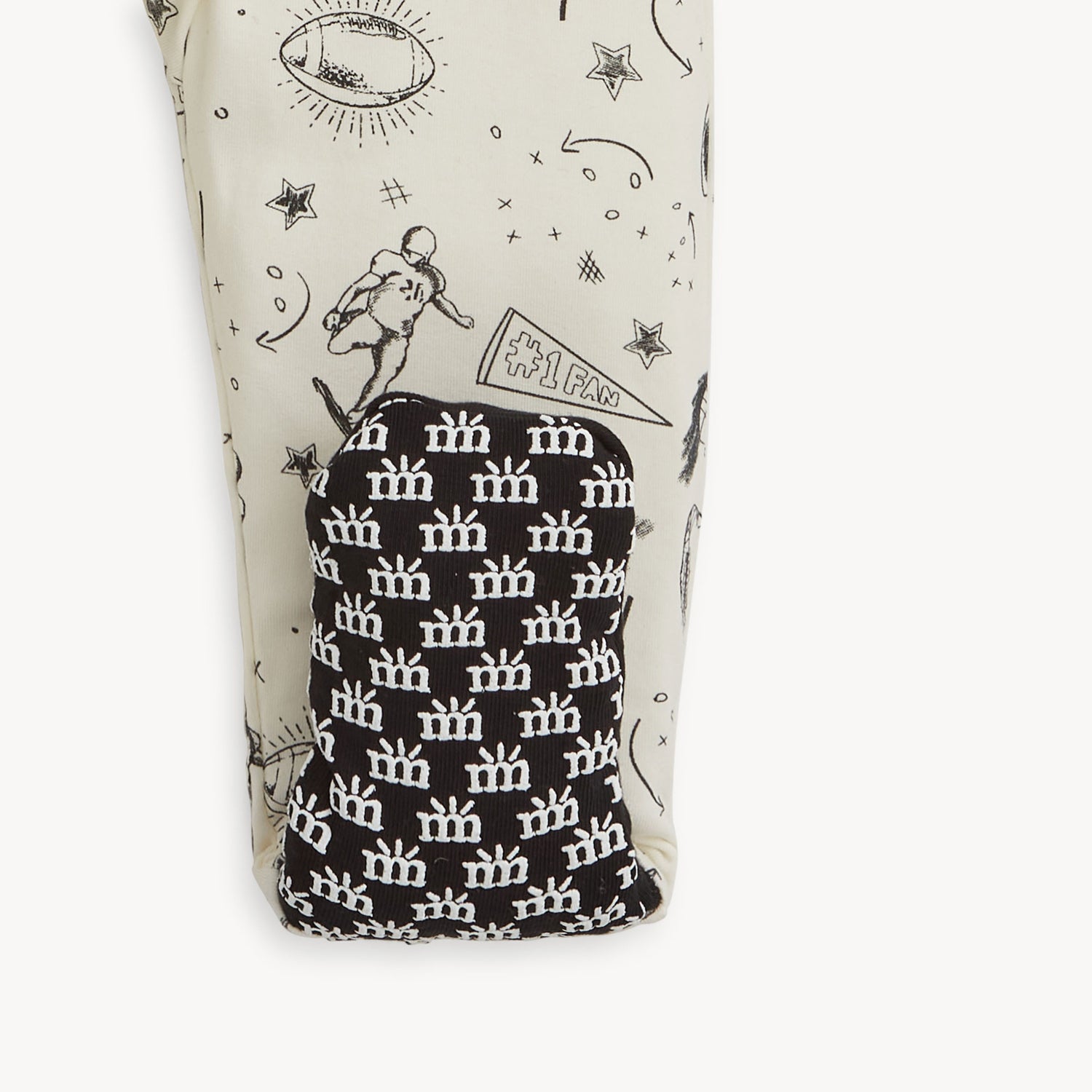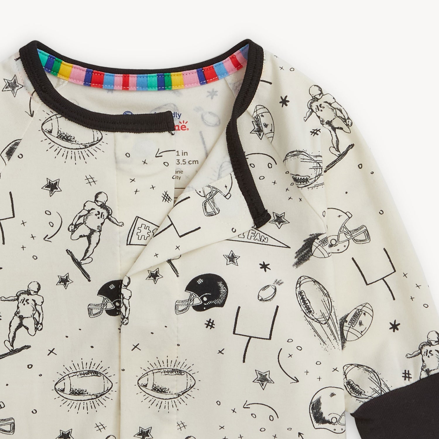 Natural Game Day convertible romper is the perfect pick for your little all-star! With a soft natural background and playful black sketched football icons—helmets, whistles, goalposts and more—this piece scores big on both style and comfort. Crafted from buttery-soft, breathable modal and finished with bold black cuffs, it easily converts from a footie to a romper with just a flip. Magnetic Me’s hidden magnetic closures make changes effortless, so your MVP is always ready for action.