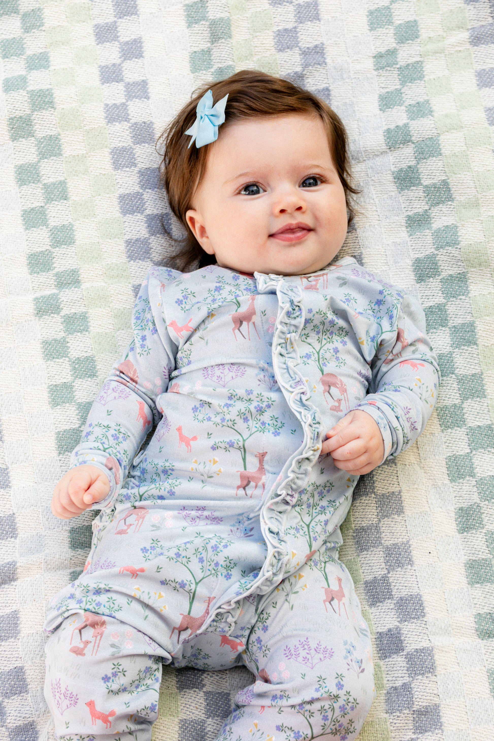 The Love You Deerly convertible coverall is the ultimate blend of style and function. Featuring our beloved woodland animal print on a soft minty background, this outfit easily converts from a cozy footie to a playful romper with just a flip. Crafted from buttery-soft, breathable modal and designed with Magnetic Me’s signature magnetic closures, it makes dressing and diaper changes effortless. Whether she’s curled up for a nap or kicking through tummy time, this one-piece keeps her comfy and cute all day long.