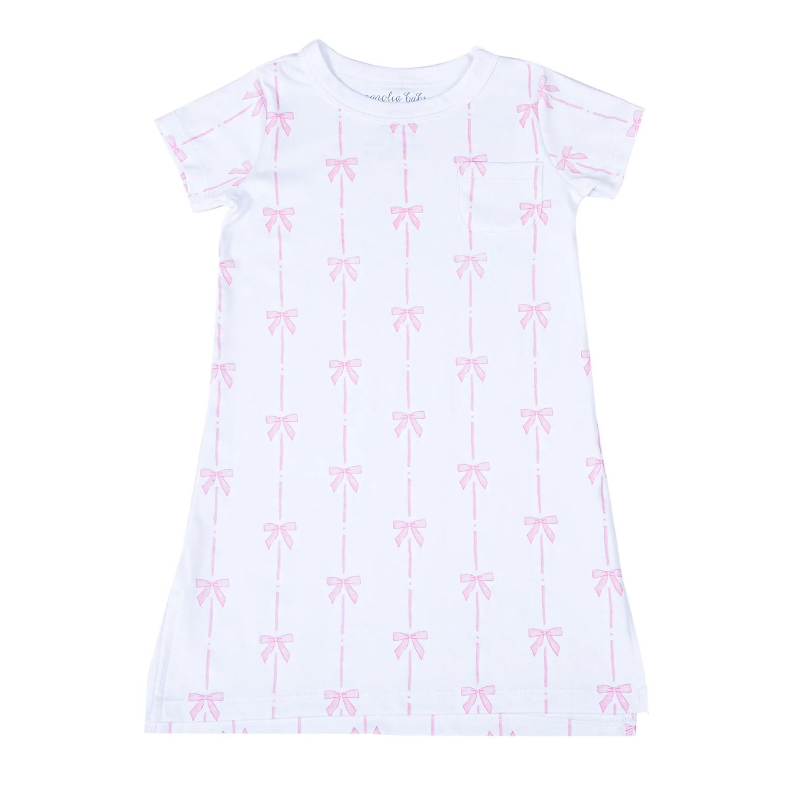 Delicate, sweet, and effortlessly charming—our Sugar Bows A-Line Dress is made for little ones who love a touch of whimsy. Crafted from soft white cotton and adorned with vertical rows of watercolor-pink bows, this dress is as comfy as it is cute. The classic A-line silhouette and short sleeves make it ideal for warm days, while the tiny chest pocket adds just the right hint of playfulness. Perfect for everything from picnics to parties, this dress is a must-have in every mini fashionista's closet.