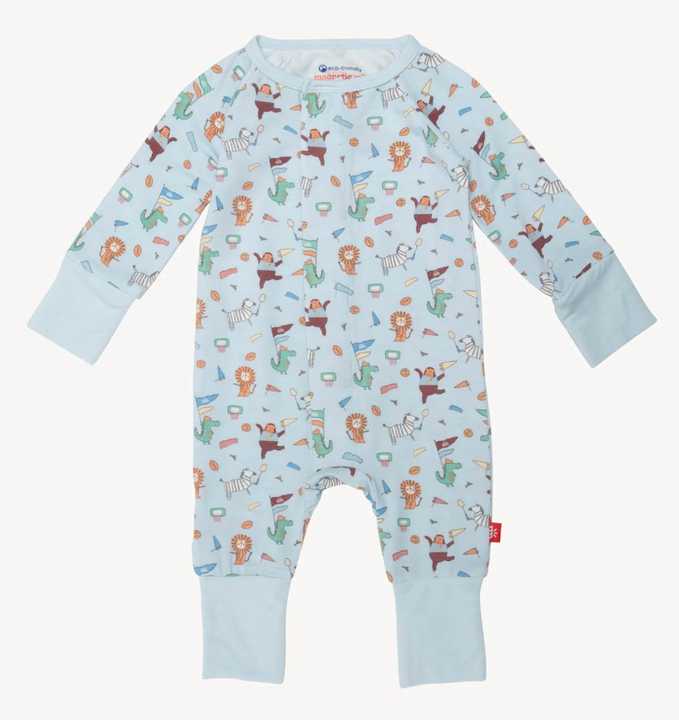 Meet our grow with me convertible coveralls, a one piece that lets you adjust its features as your baby grows. Magnetic closures ensure quick and quiet changes, and holdover cuffs for hands and feet extend the length and life of the coverall. And don’t forget, it’s soft, breathable and gentle on sensitive skin!
