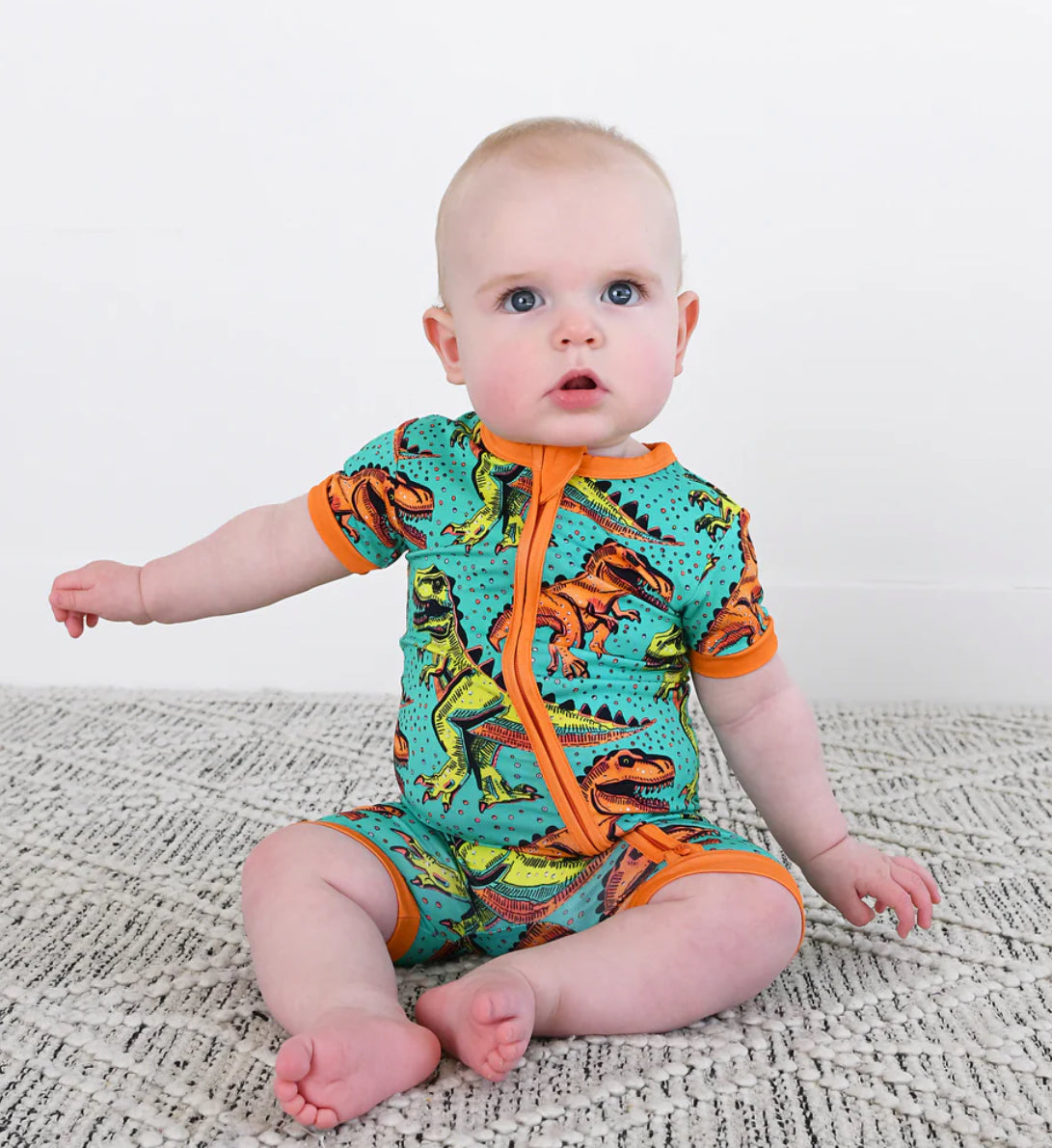This shorty zip one piece is super soft and comfortable. Featuring a 2 way zipper that runs from the top of the outfit to the bottom. Making for super easy diaper changes without having to remove the whole outfit. The fit is the same as our Zip style.